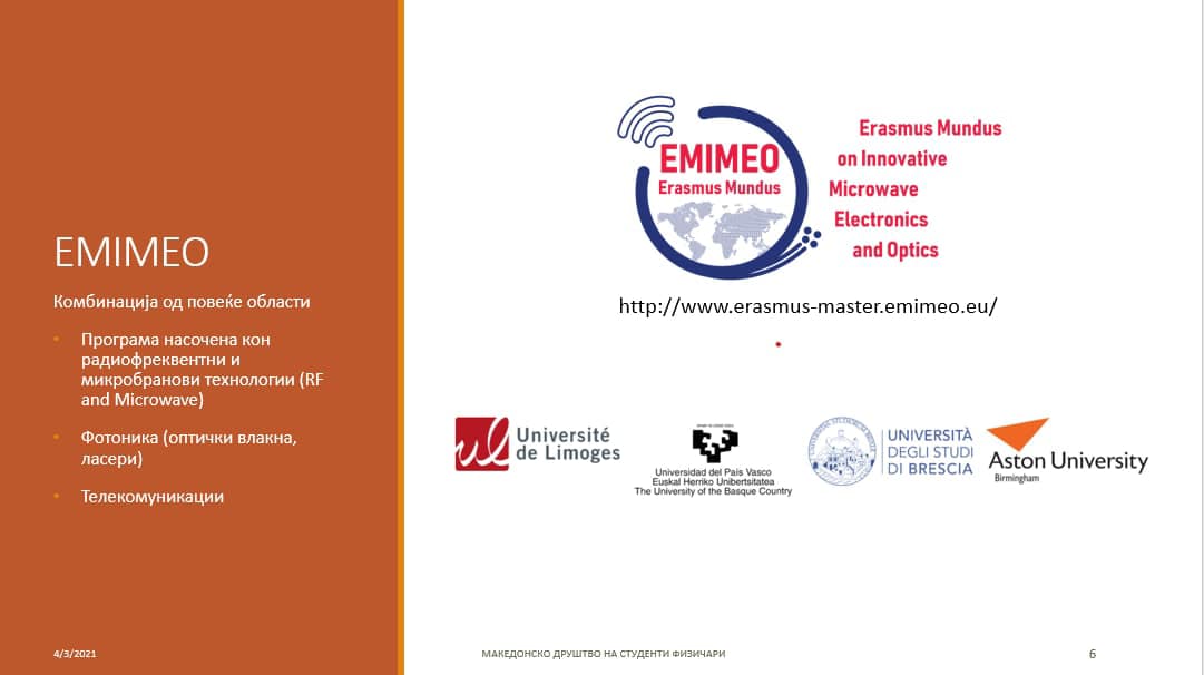 Metodi Belchovski, 2nd intake EMIMEO student, from North Macedonia, had the opportunity to present EMIMEO and said « I’m glad that I had the chance to present the EMIMEO master program at the Alumni Meeting of MDSF. Not a lot of physics students decide to go into engineering after their bachelor, and I want to encourage them to do so.