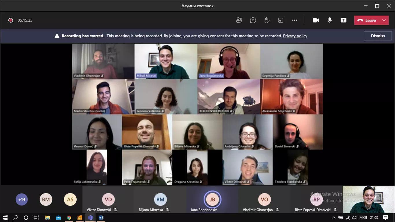 The Alumni meeting with the Macedonian Society of Physics Students (MDSF) was held virtually on Saturday 03 April 2021. The event was supported by the European Physics Society (EPS). There were 8 presenters, most of them PhD students in Paris, Leibnitz, Marseille, Geneva and Manchester. Around 40 participants attended the event. A short report of the meeting has been done in Macedonian HERE